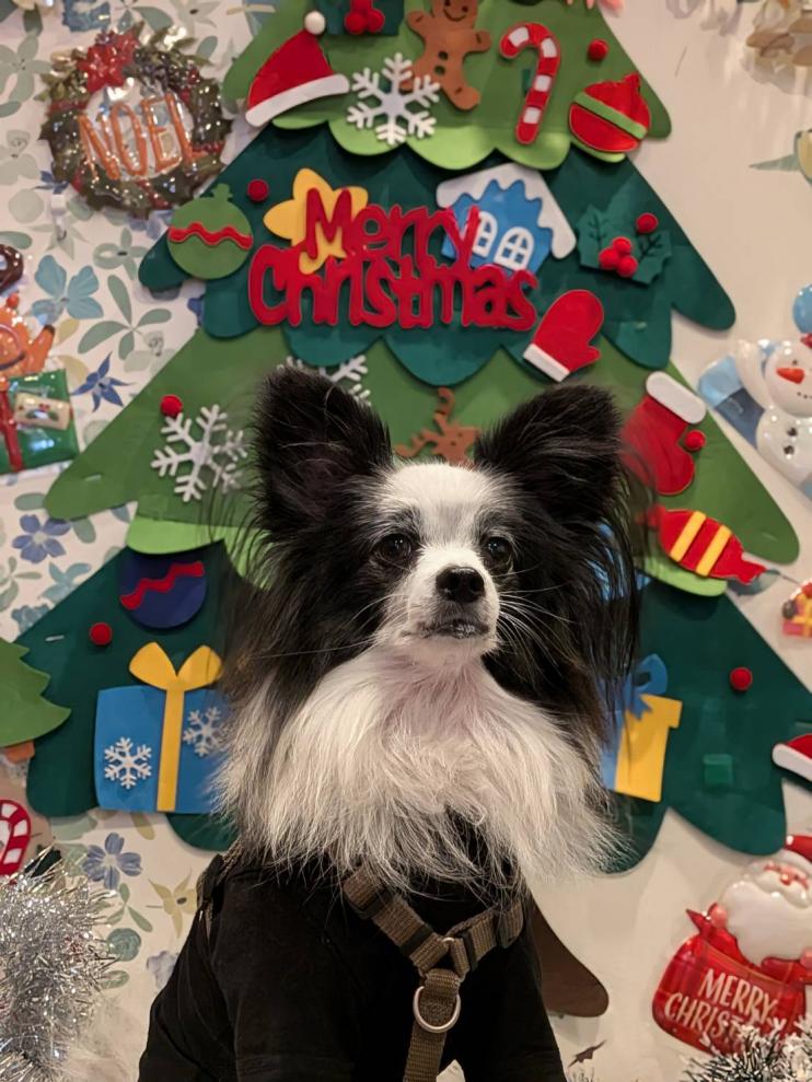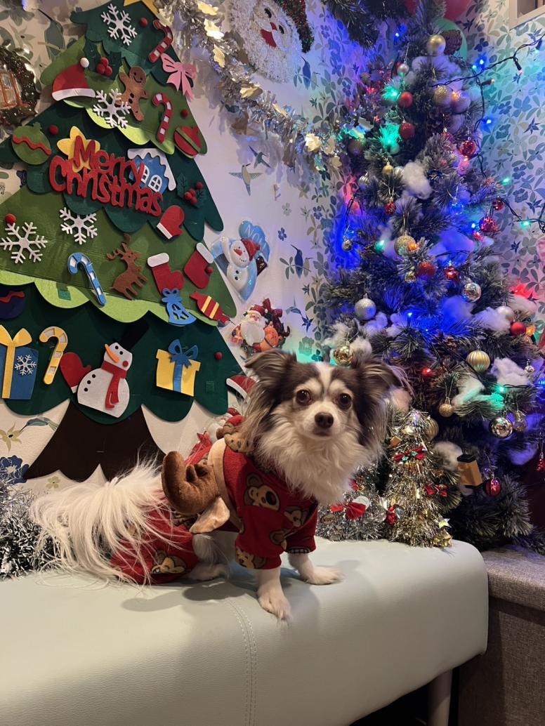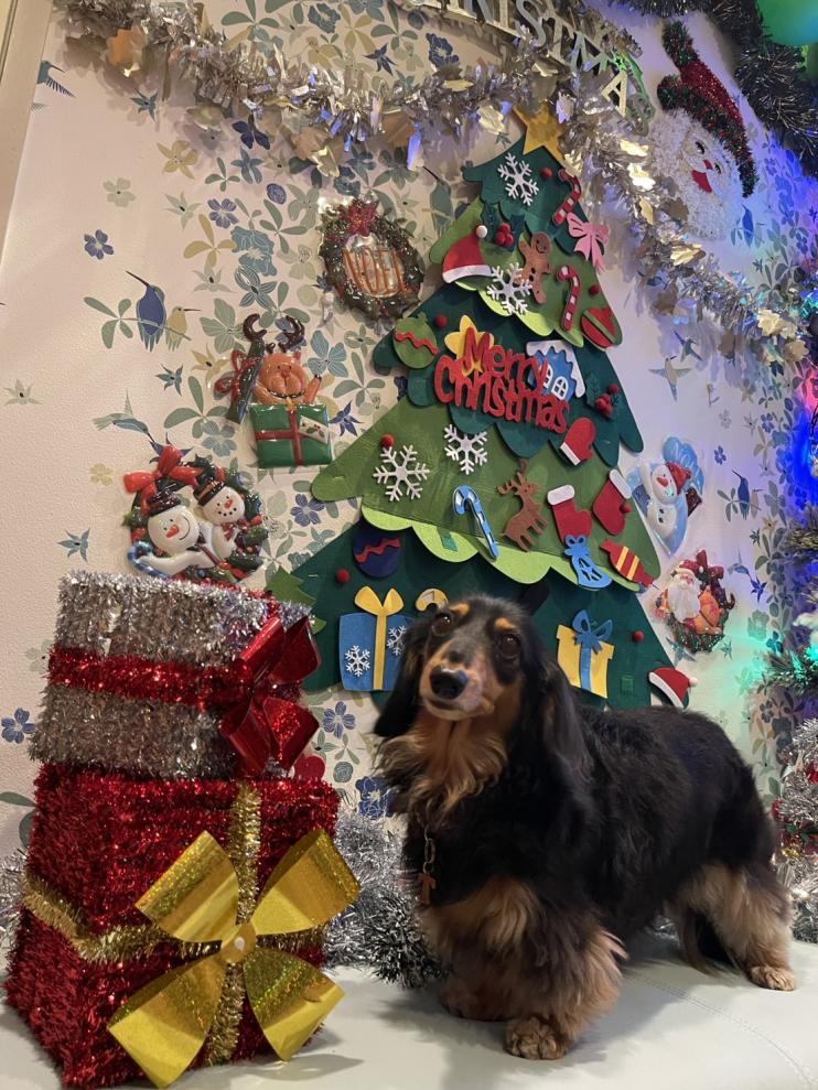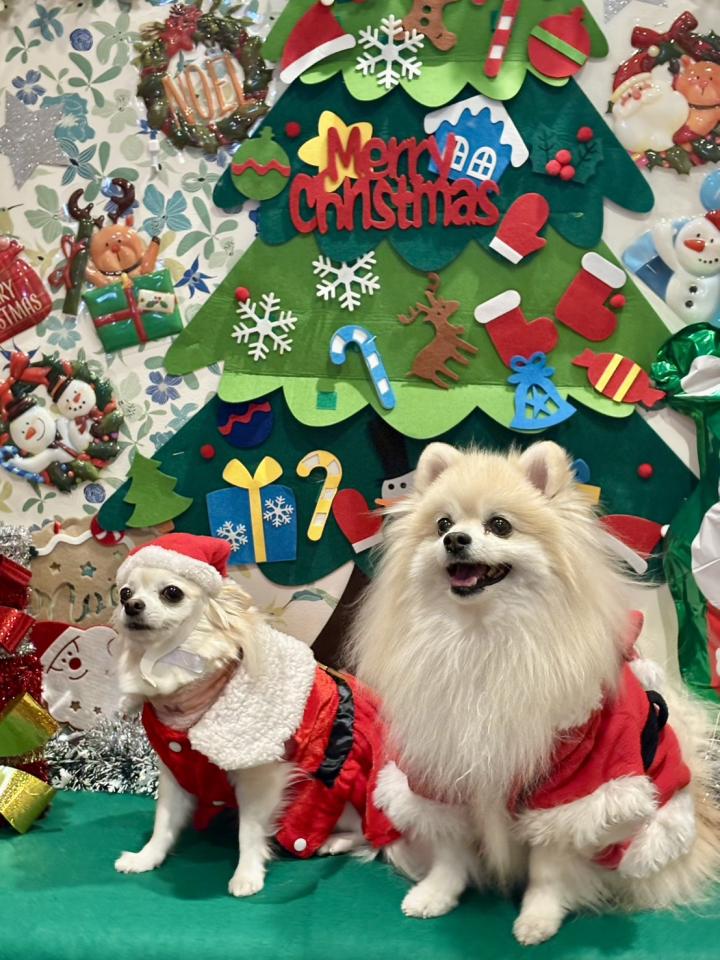 デコ店長のお友達 いーちんちゃん クリスマスツリーバックに 凛々しいお顔でポストカードのような お写真が撮れました | ![]() |